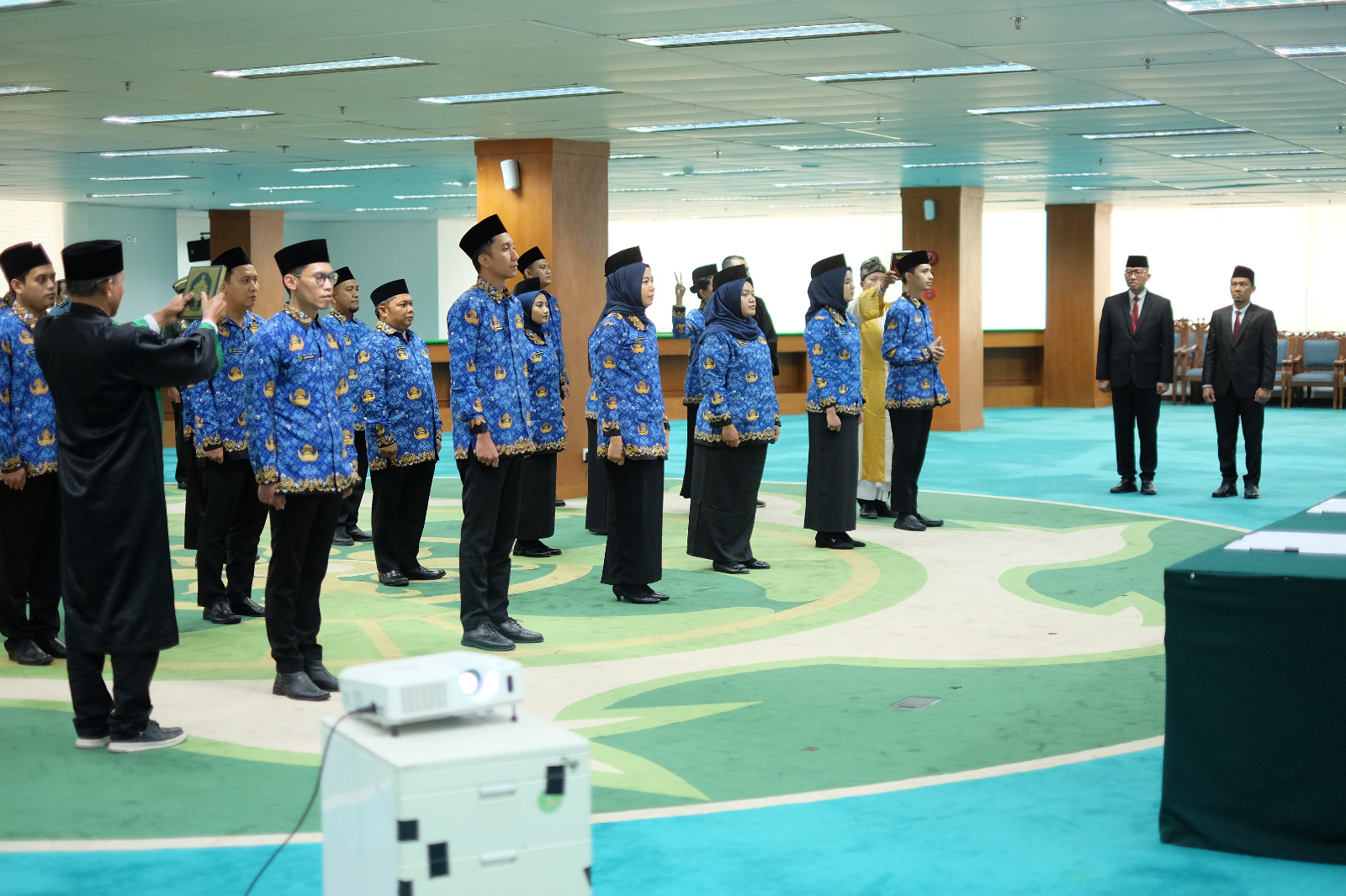 Jakarta, 8 September 2025 Direktur Jenderal Badan Peradilan Militer dan Peradilan Tata Usaha Negara Mahkamah Agung Marsekal Muda TNI Dr. Yuwono Agung Nugroho, S.H., M.H., melantik dan mengambil sumpah jabatan Pegawai Pemerintah Dengan Perjanjian Kerja di lingkungan Direktorat Jenderal Badan Peradilan Militer dan Tata Usaha Negara. Sebanyak 17 Pegawai Pemerintah Dengan Perjanjian Kerja dilantik di Gedung Sekretariat Mahkamah Agung RI.
